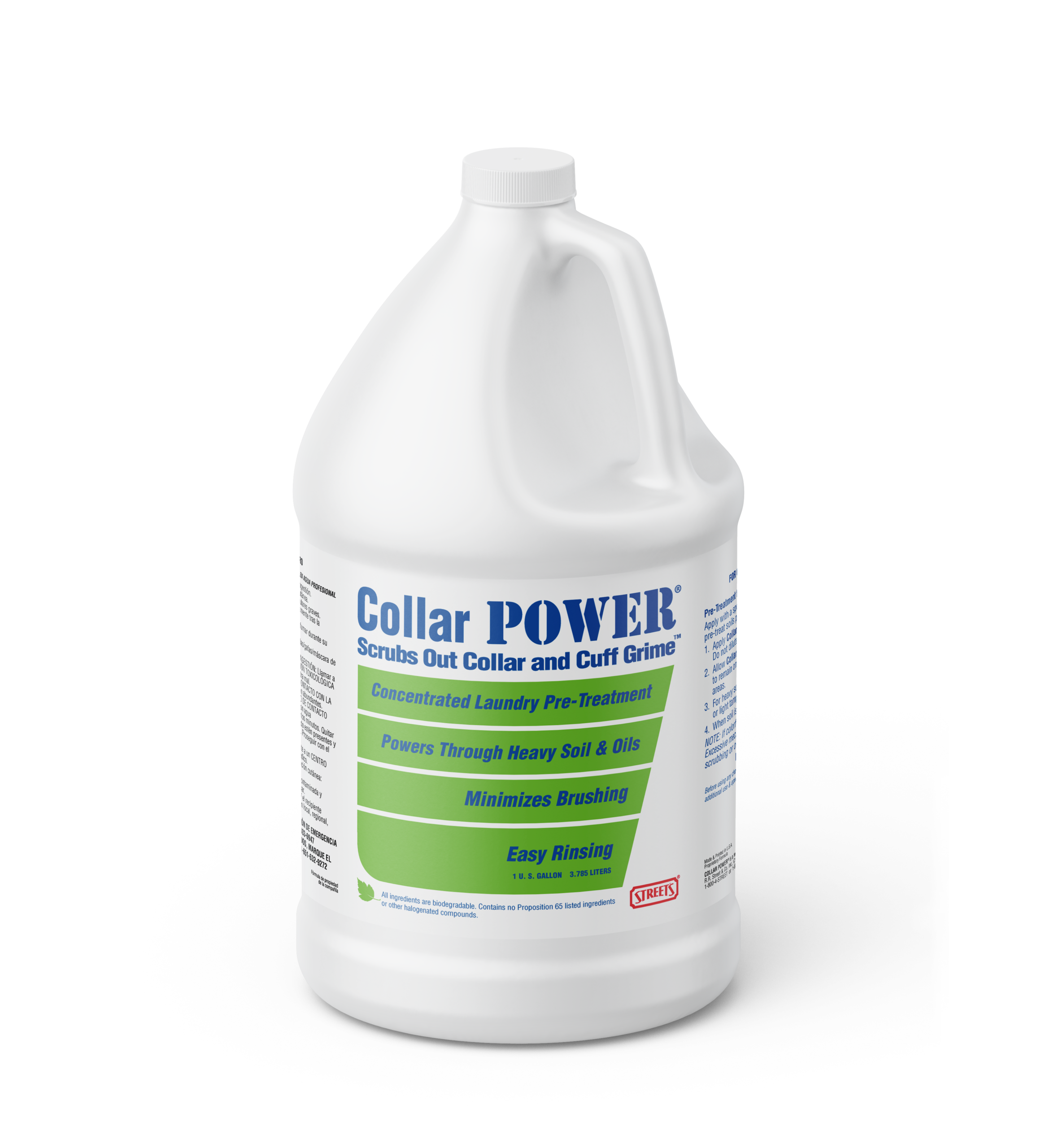 Collar POWER™ is a concentrated laundry pre-treatment that is very effective in removing oily dirt commonly found on the collars and cuffs of laundered shirts, usually without brushing. It aids in the removal of stains such as oily foods, cosmetics, inks, embedded soil and grime. Collar POWER works well on laundered items such as khakis and golf shirts, and is safe to most fabrics and colors. If colorfastness is questionable, test garment in a hidden area.